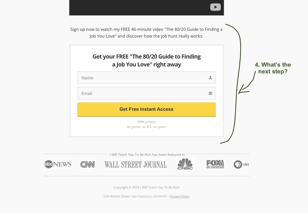 Our example copy brilliantly answers that, with a clear paragraph stating: “In this video, you’ll get”