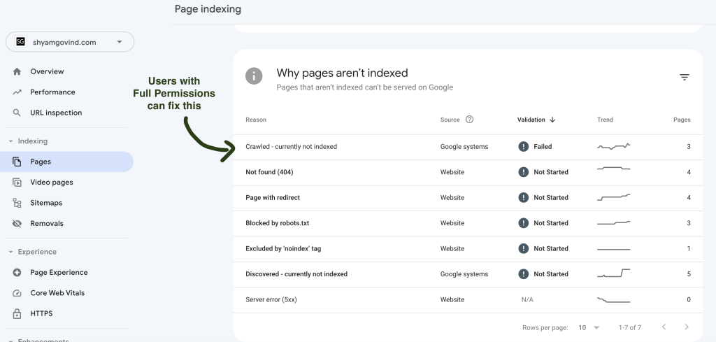 Let’s now understand the 3 types of user permissions in Google Search Console.