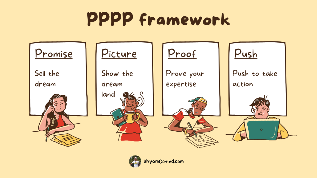 PPPP is an incredibly powerful framework in copywriting as it allows the reader to improve their conversion rates in a scientific manner.